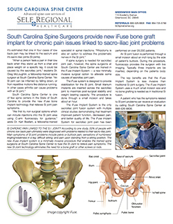 South Carolina Spine Center is one of few spine centers in the State of South Carolina to provide the new iFuse bone implant technology that relieves SI joint pain symptoms.